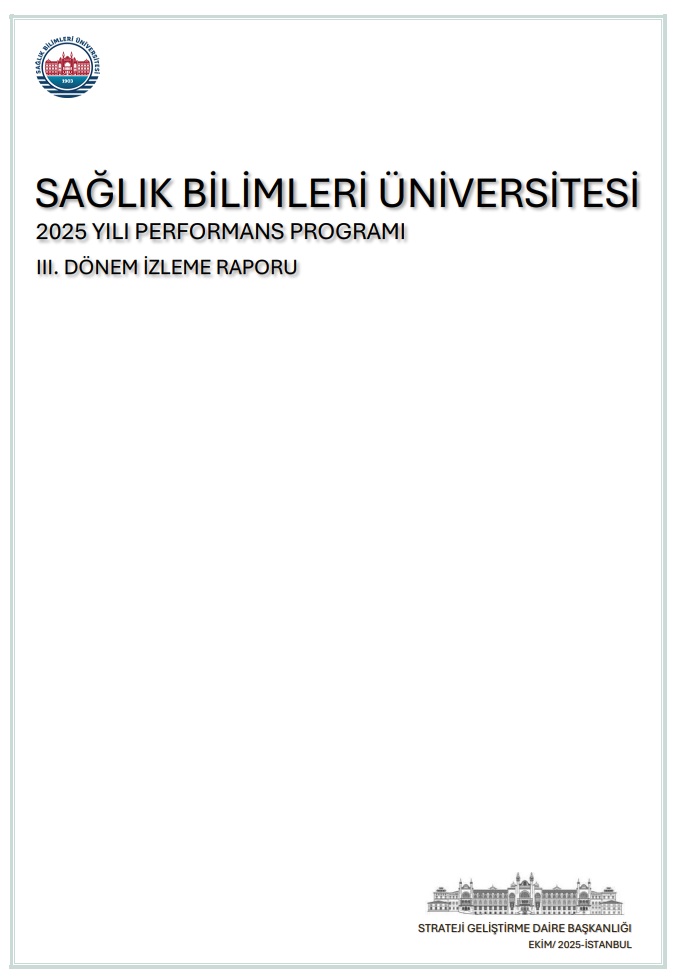 Sağlık Bilimleri Üniversitesi 2025 Yılı Performans Programında yılın üçüncü çeyrek dönemi itibarıyla meydana gelen gerçekleşmeler, kamu mali yönetiminin saydamlık ve hesap verme sorumluluğu ilkeleri gereği kamuoyu ve paydaşlarımızın bilgilerine sunulmuştur.